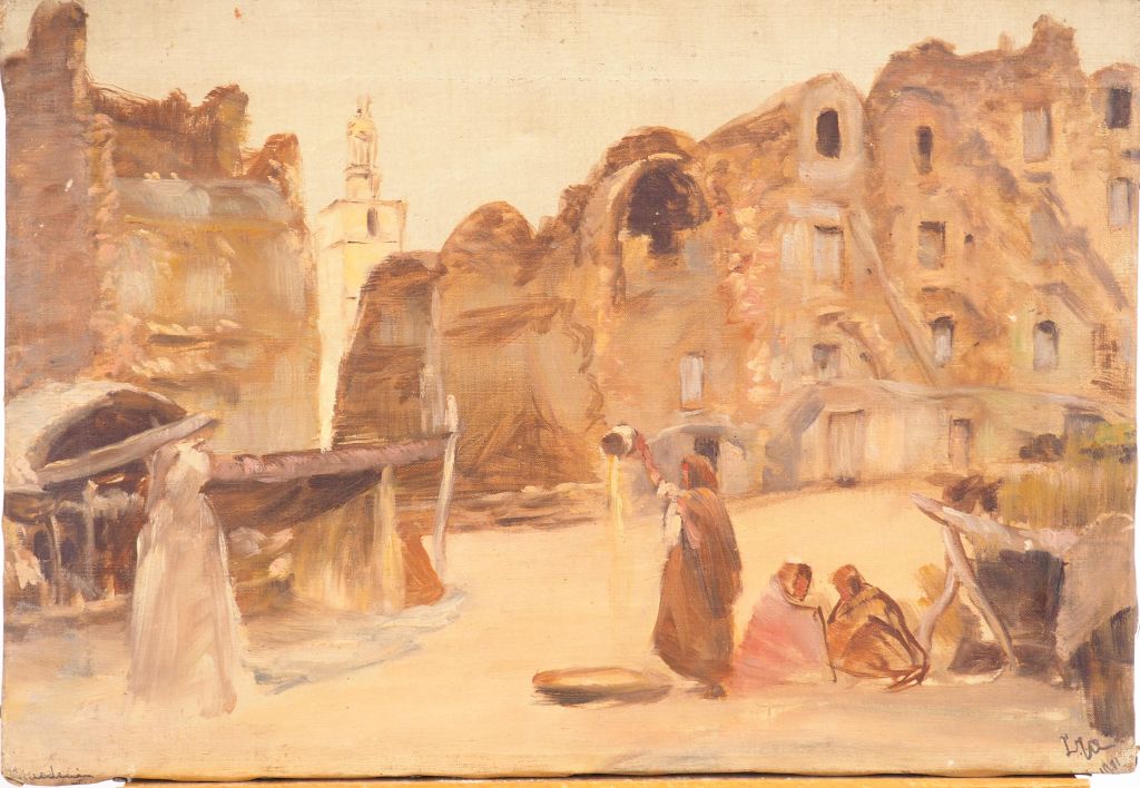Louis Joseph ANTHONISSEN "Ville animée d'Afrique du Nord" Huile sur toile. Signée en bas à gauche. Datée. Dim. 26,2 x 37,8 cm