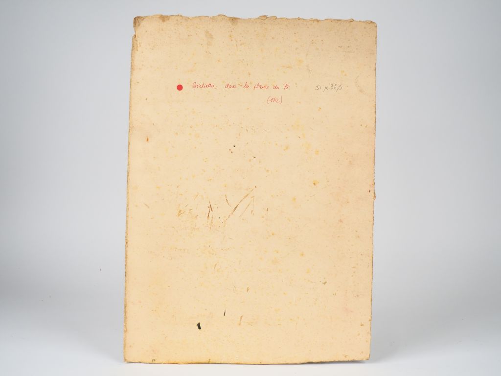 Mario CAVAGLIERI. "Giulietta dans la plaine du Pô" Huile sur carton, titrée et datée au dos 1912 Dim. 51,5 x 36,5 cm