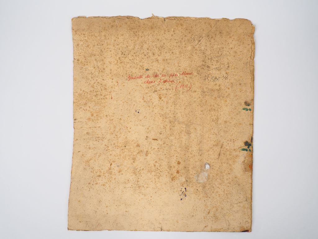Mario CAVAGLIERI. "Giulietta de dos en jupon blanc dans l'atelier" Huile sur carton, titrée au dos et datée 1912 Dim. 45,5 x 38 cm