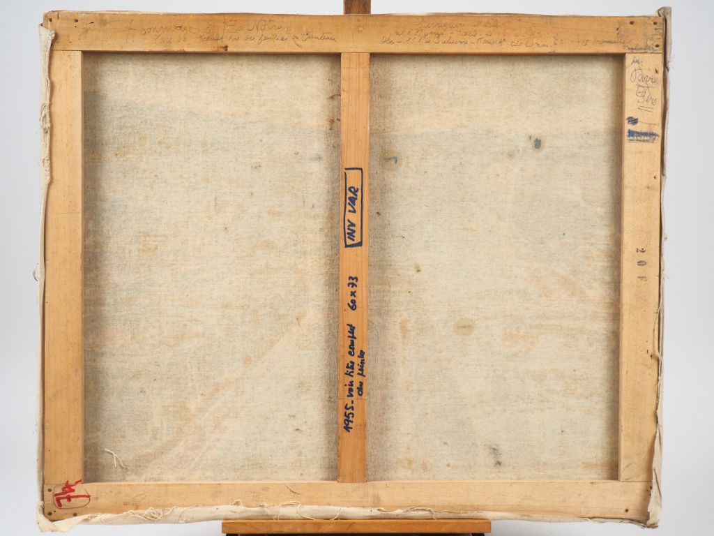 Mario CAVAGLIERI. "Hommage à Lenôtre, vue d'une fenêtre du château" Huile sur toile, signée en bas à gauche et datée 55 Dim. 60 x 73 cm
