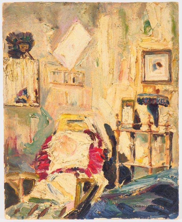 Mario CAVAGLIERI. "Intérieur" Huile sur carton, signée en bas à droite, titrée et datée au dos 1912 Dim. 34 x 27,5 cm