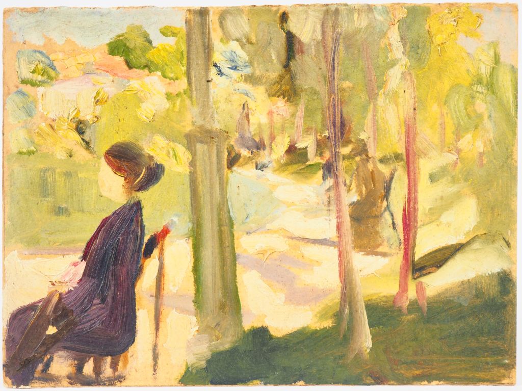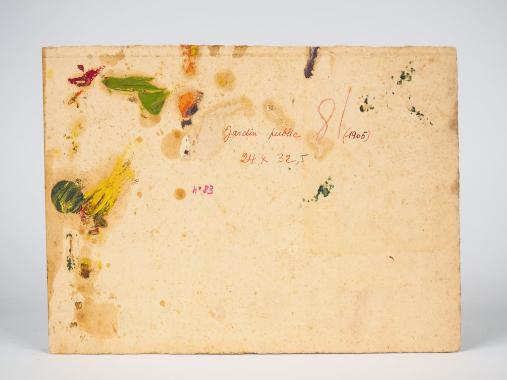 Mario CAVAGLIERI. "Jardin public" Huile sur carton, titrée et datée au dos 1905 Dim. 24 x 32,5 cm