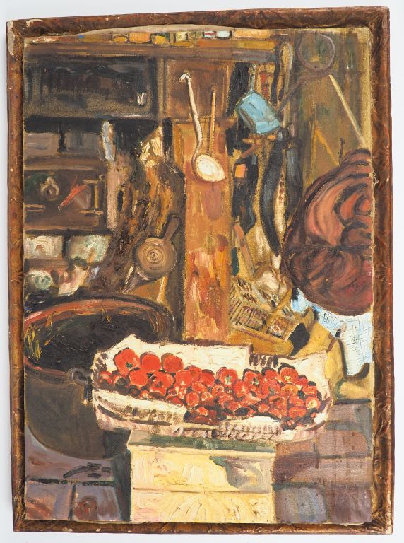 Mario CAVAGLIERI. "La cuisine du moulin" Huile sur toile, signée en bas à droite Dim. 69,5 x 49 cm