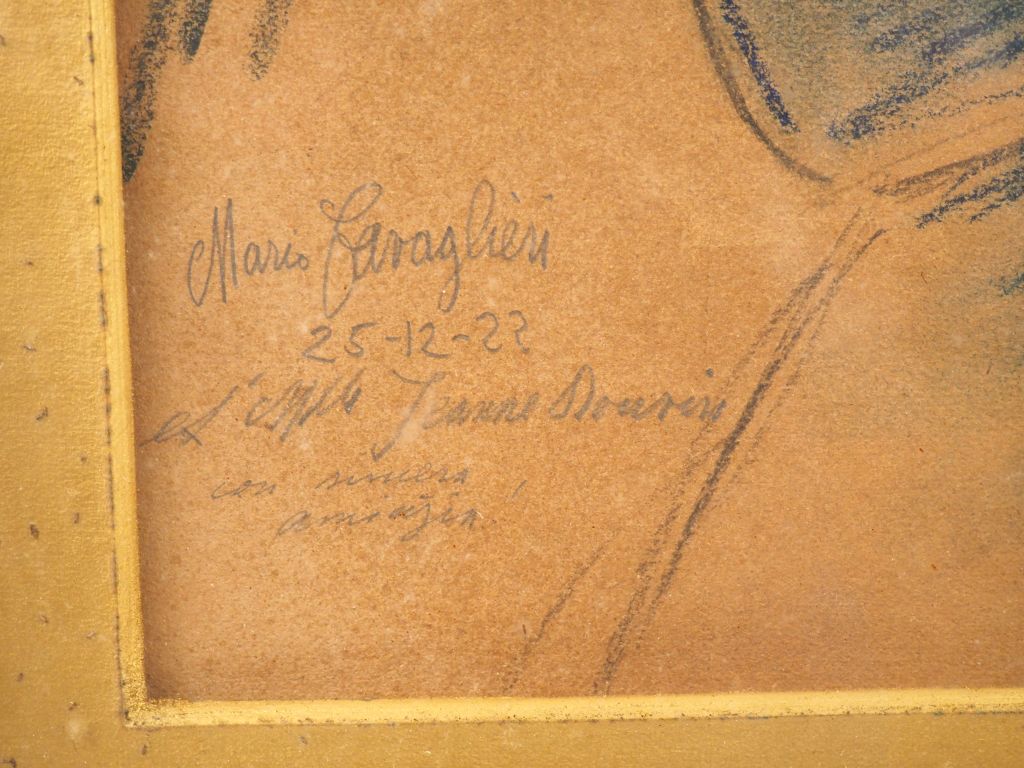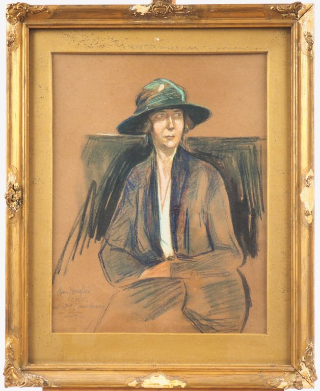 Mario CAVAGLIERI. "Portrait de dame au chapeau vert" Dessin au crayon gras, signé en bas à gauche Dim. 37 x 29 cm