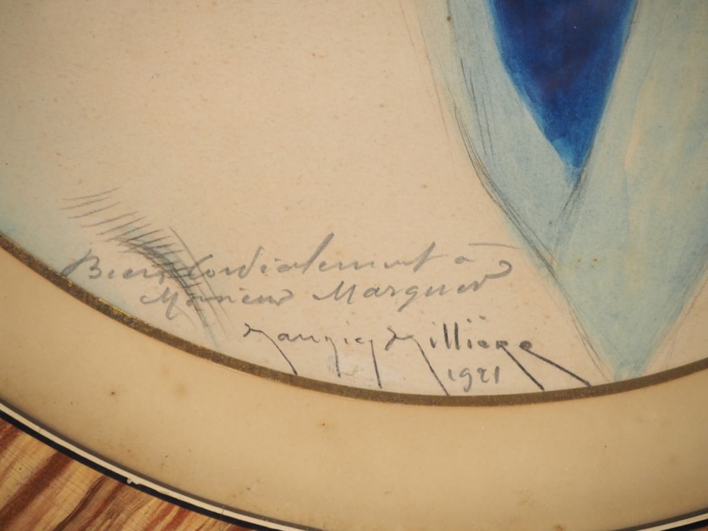 Maurice MILLIERE. "la jeune fille à la boule de cristal" Aquarelle, signée en bas à gauche Dim. 43 x 33,5 cm