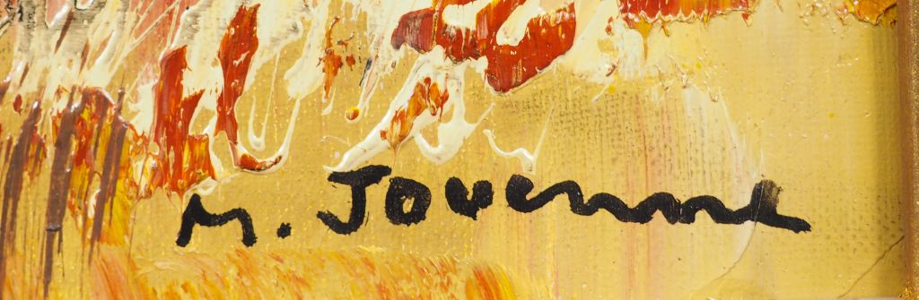 Michel JOUENNE. "Le mas perdu". Huile sur toile, signée en bas à droite. Dim. 46 x 45 cm.