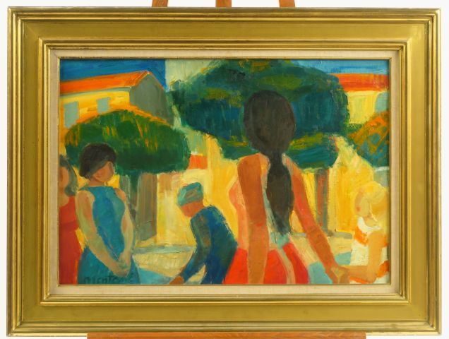 MONTANE "La grande place à Fréjus" Huile sur toile. Signée en bas à gauche. 50 x 73 cm