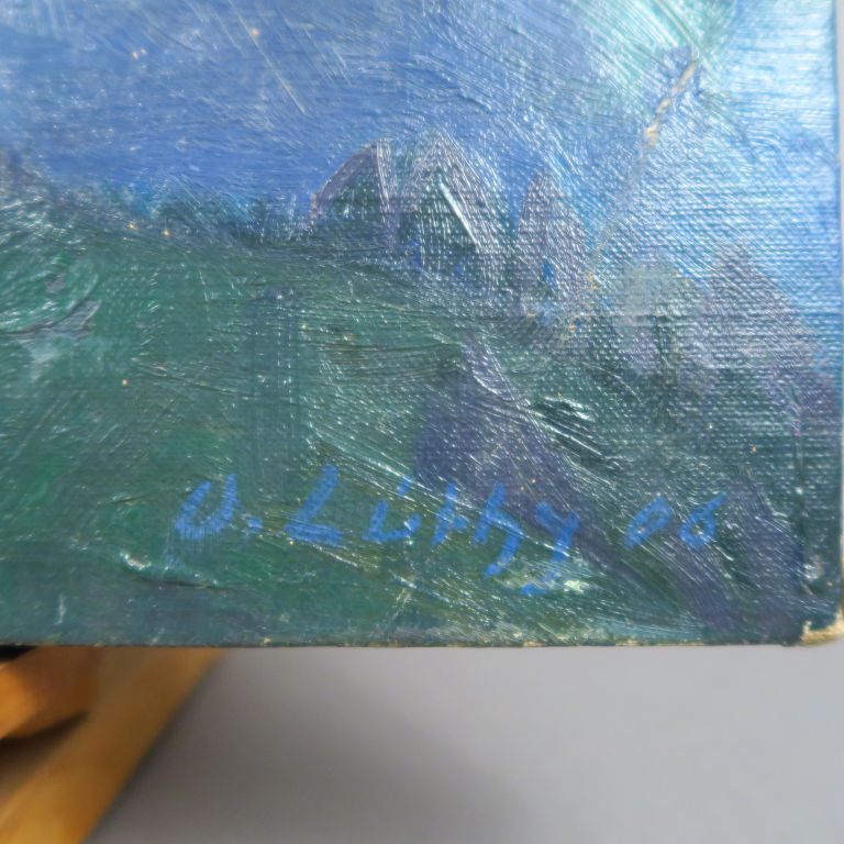 O. LÜTHY. "Paysage de montagne". Huile sur toile, signée en bas à gauche et datée 06. Dim. : 45,5 x 65 cm.