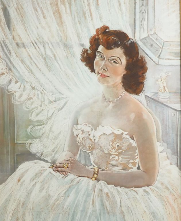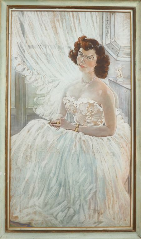 P. FILHIAUD LAVERGNE. "Portrait d'élégante". Grand pastel, signé en bas à droite et daté 1949. Dim. 160 x 90 cm.