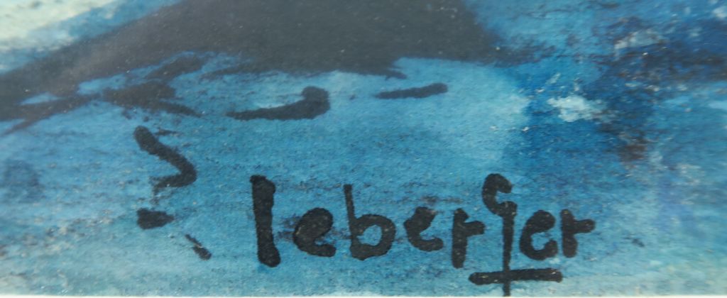 P. LEBERGER. "Barques bleues". Aquarelle, signée en bas à gauche. Dim. : 22 x 31,5 cm.