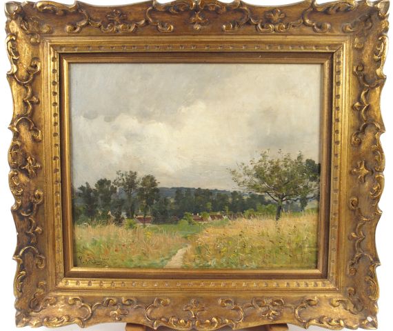 P. SCHMITT, " Paysage au sentier ". Huile sur toile, signée en bas à gauche. 38 x 46cm