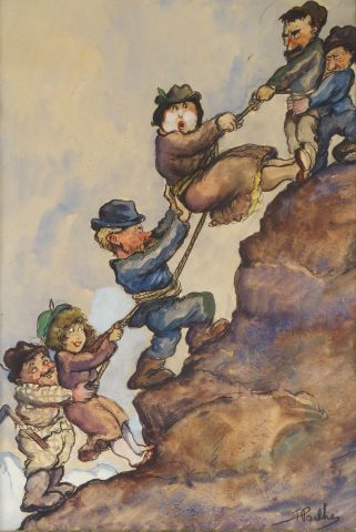 PAILHES "La cordée". Aquarelle. Signée en bas à droite. 43 x 29 cm