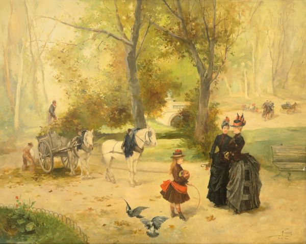 PAREDES "Promenade automnale à Paris". Huile sur toile, signée et datée 1888 en bas à droite. 72,5 x 91,5 cm