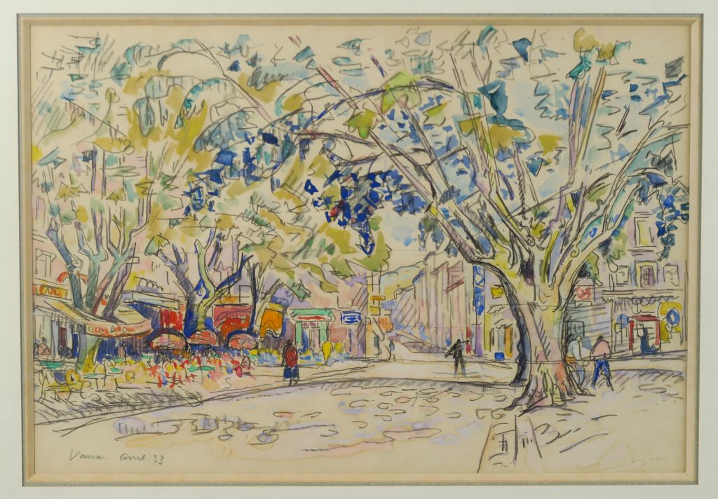 Paul SIGNAC "Vaison la Romaine" Aquarelle. Cachet de la signature en bas à droite. Située et datée avril 33 en bas à gauche. 28 x 41 cm