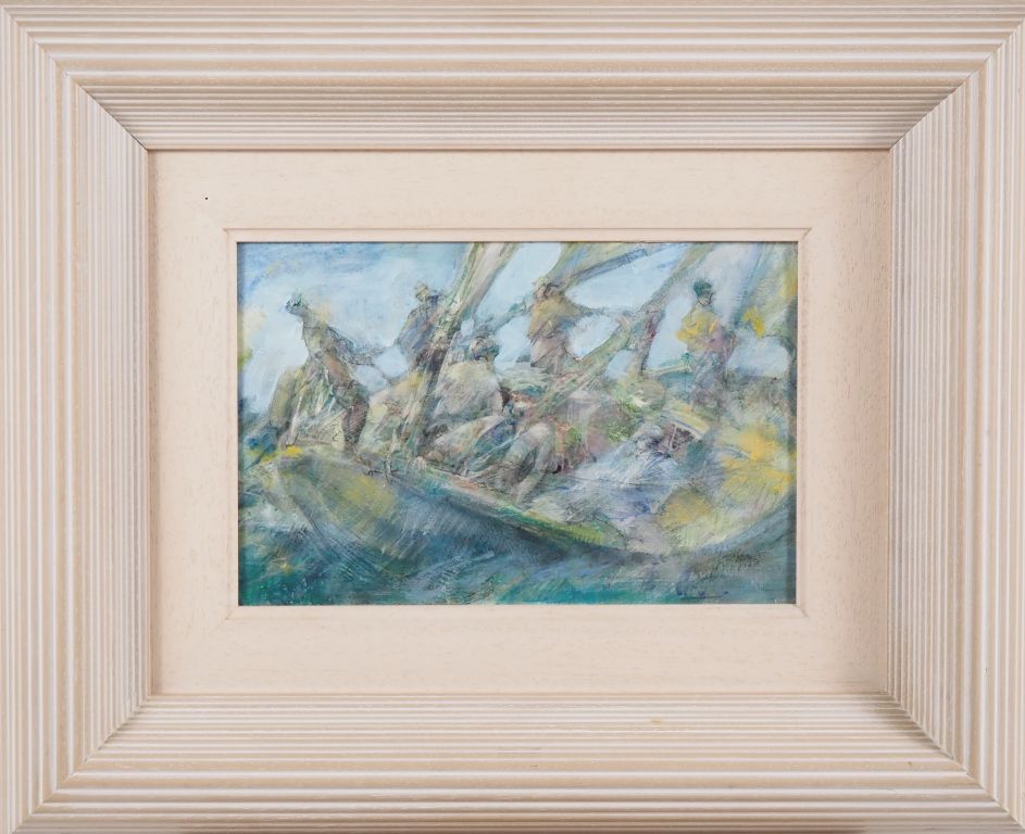 Pierre CARO. "pecheurs" Huile sur carton, signée en bas à droite Dim. 17 x 27,5 cm