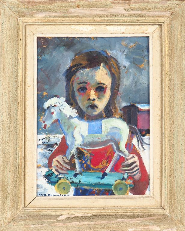 PONCELET "Fillette et son jouet" Huile sur toile. Signée en bas à gauche et datée 42. 33,5 x 24,5 cm