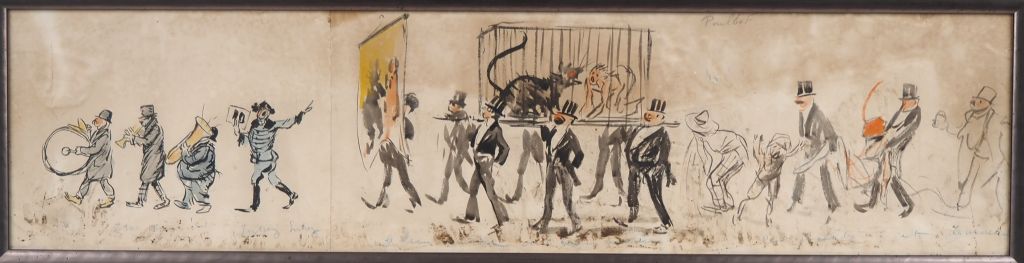 POULBOT. "la procession caricaturale" Pochoir signé en haut. Dim. 22,5 x 94 cm