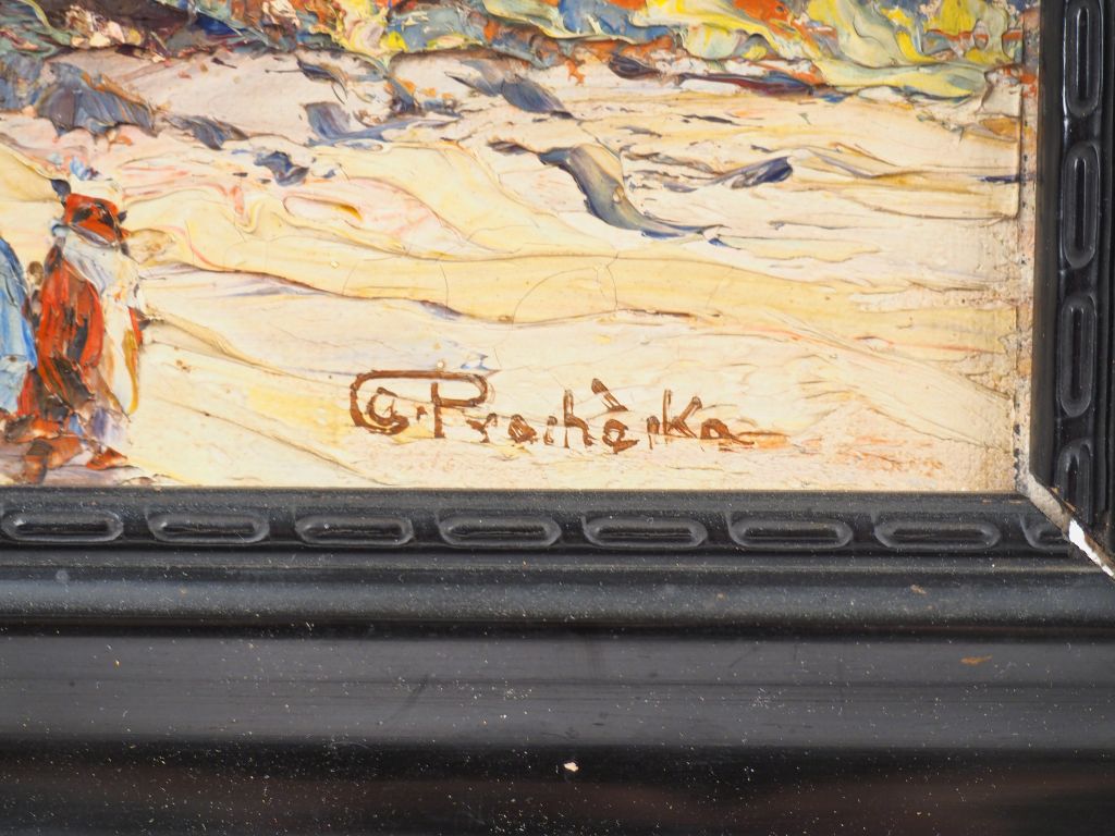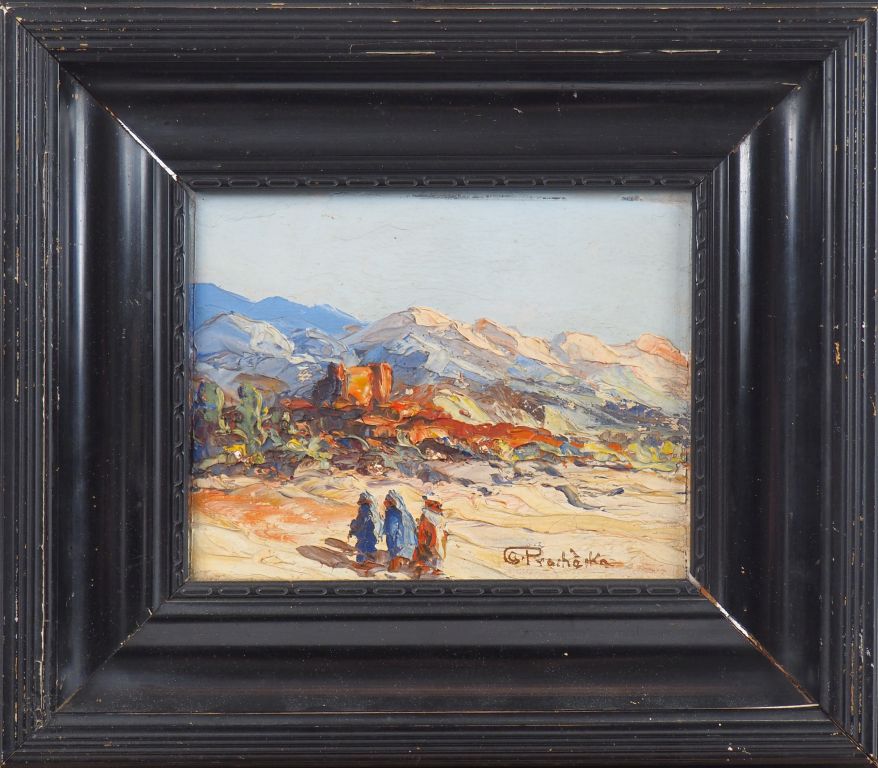 PROCHESKA. "Paysage orientaliste". Huile sur carton, signée en bas à droite. Dim. 13,5 x 21 cm.