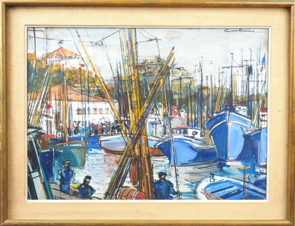 R. CAILLAUX. "Le port de St Jean de Luz". Gouache, signée en haut à droite. Dim. 55 x 76 cm