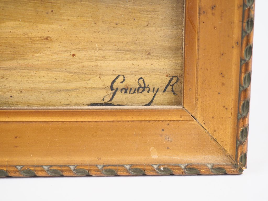 R. GAUDRY. "Le rivage". Huile sur carton signée en bas à droite. Dim. ...