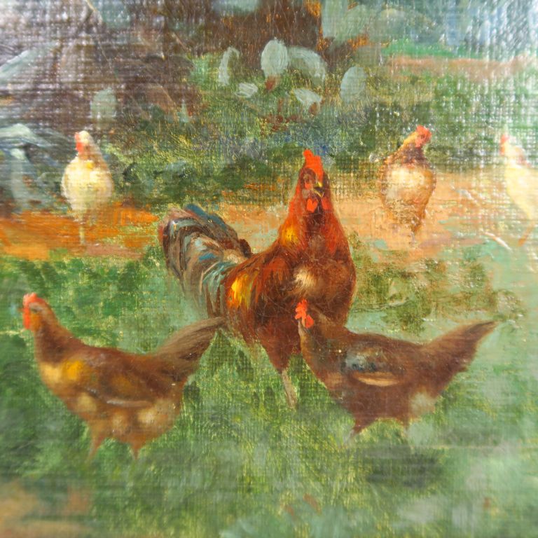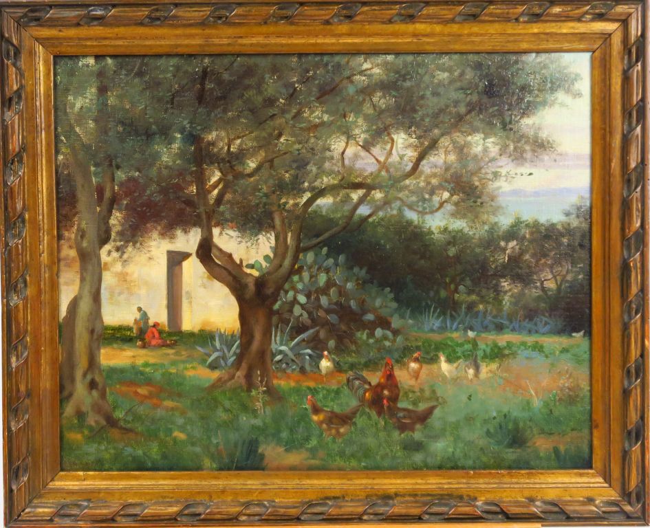 REYMANN. "Cour de ferme animée en Afrique du Nord" Huile sur toile marouflée sur panneau, signée en bas à gauche. Dim. : 33 x 41 cm.
