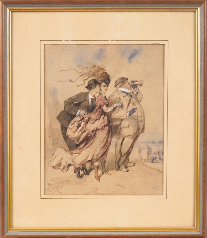 Lot de RIOU. "l'amant" Aquarelle, signée en bas à gauche et datée 1868 Dim. 2 au prix de 40 à 60 € en vente aux enchères par l'hôtel des ventes Primardeco