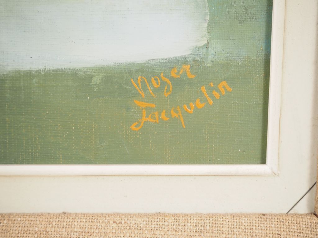 Roger JACQUELIN. "nature morte" Huile sur toile, signée en bas à droite Dim. 55,5 x 46 cm