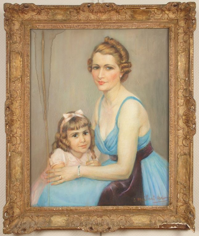 S. MAILLART-MARION. 'Portrait d'une mère et de sa fille'. Pastel, signé en bas à droite. 81 x 64 cm (mouillures).