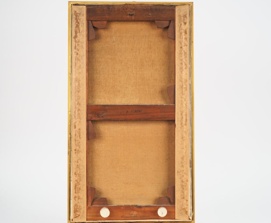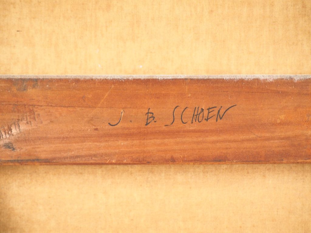 SCHOEN. "Portrait d'élégante en pied". Huile sur toile, signée en bas à droite et datée 1919 Dim. 61 x 33,5 cm.