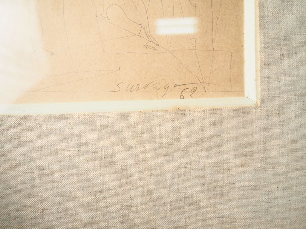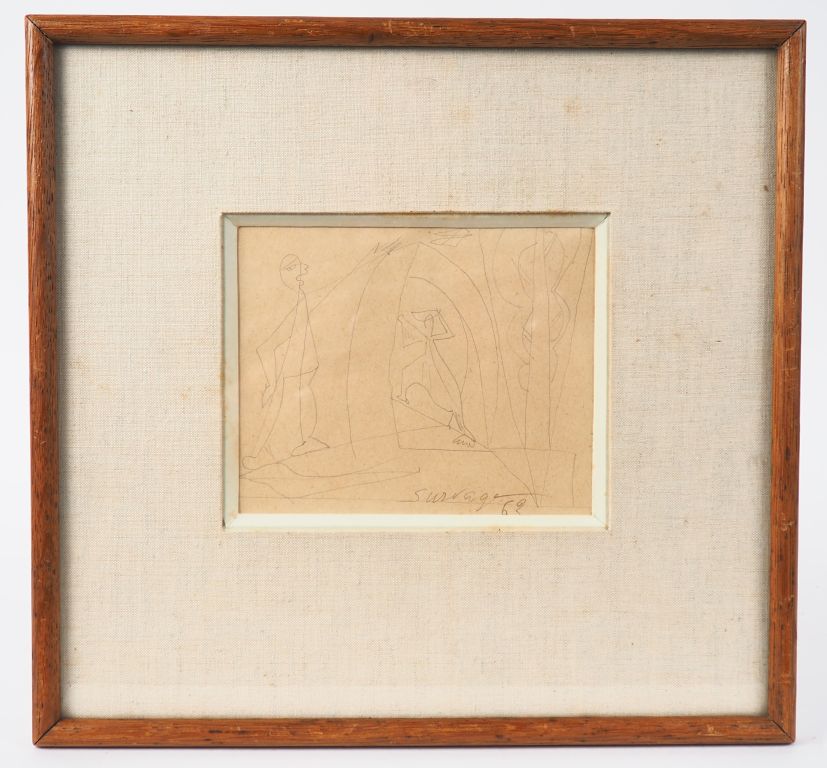 SURVAGE. "Personnages" Dessin au crayon, signé en bas à droite et daté 62 Dim. 10,5 x 12,5 cm