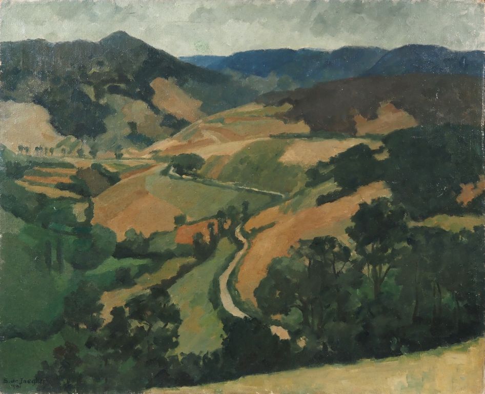 Suzanne REY de JAEGHER. "Paysage du Morvan". Huile sur toile, signée en bas à gauche et datée 1931. Dim. 81 x 99 cm