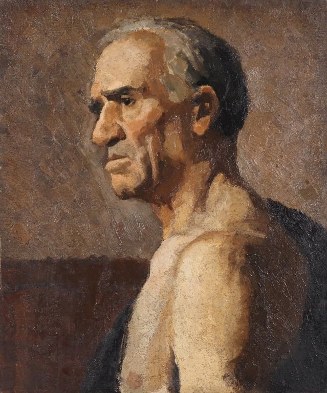 Suzanne REY de JAEGHER. "Portrait d'homme en buste, étude". Huile sur toile, signée au dos. Dim. 55 x 46 cm