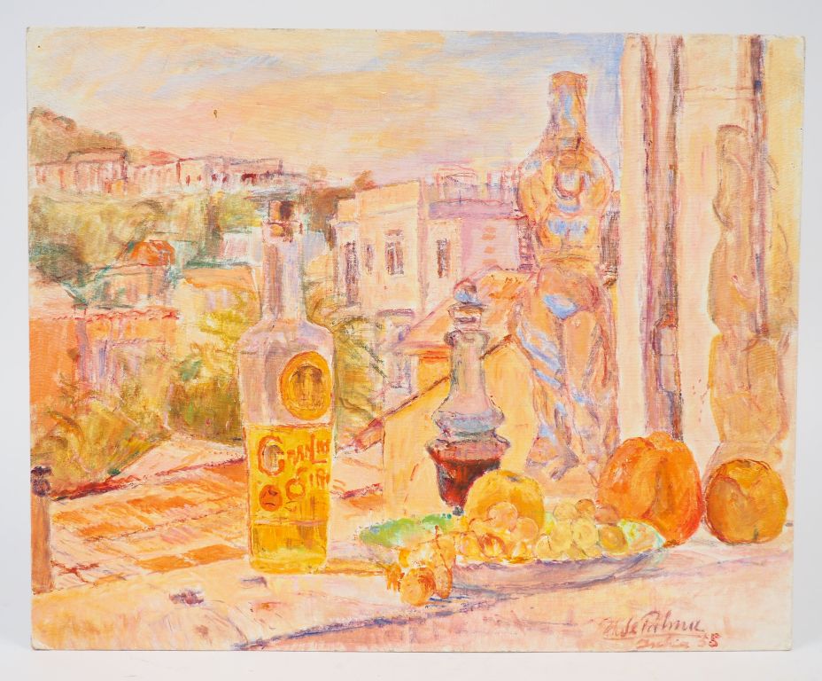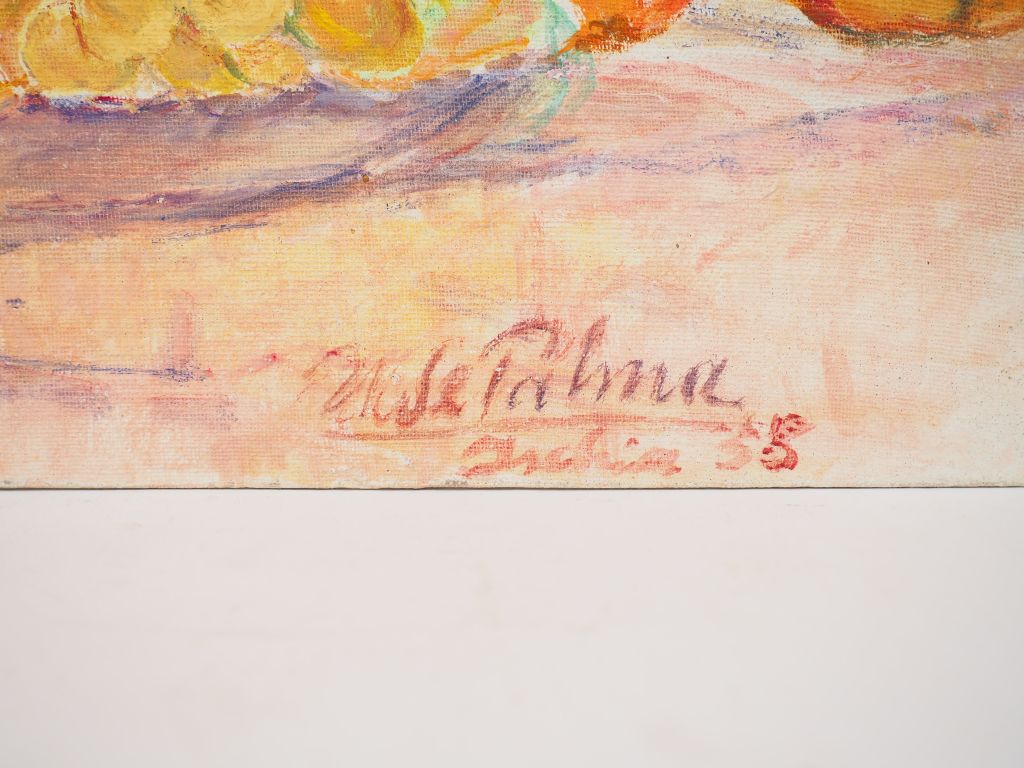 Ugo DE PALMA. "Ischia". Huile sur toile marouflée sur panneau, signée en bas à droite, titrée et datée 55. Dim. 40 x 50 cm