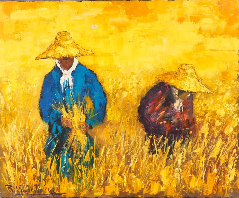 VAN DEN BULCKE. "Glaneuse en Espagne". Huile sur toile signée en bas à gauche, titrée au dos. Dim. 50 x 61 cm.