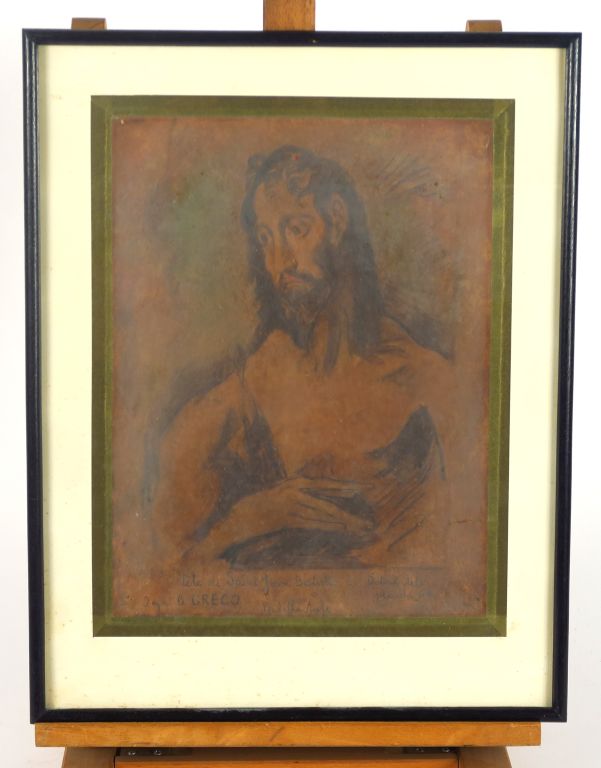 VERDILHAN "Tête de saint Jean-Baptiste d'après Le Greco" Dessin. Signé et titré. 31 x 23,5 cm