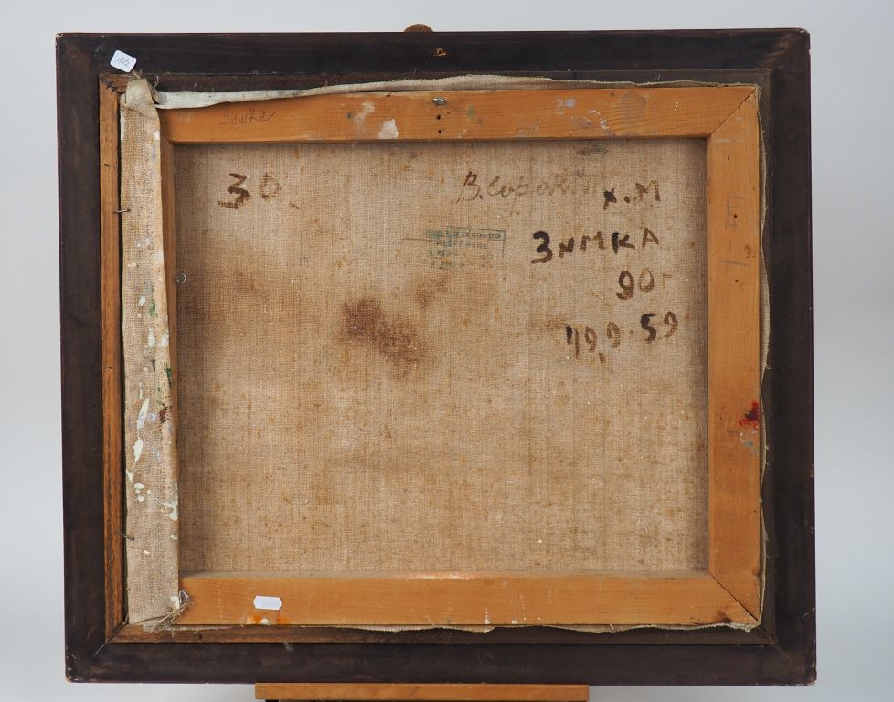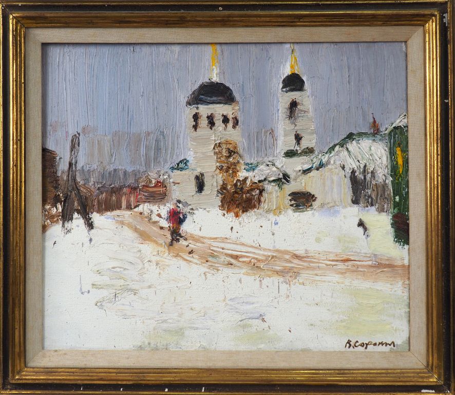 Victor SOROKIN. "Village en Russie". Huile sur toile, signée en bas à droite, datée au dos 59 Dim.50 x 60 cm.