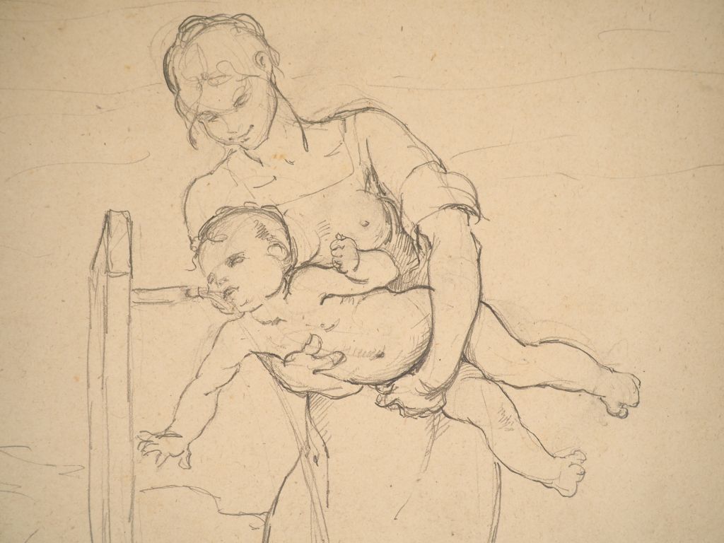 Virginie DEMONT-BRETON. "Etude, jeune mère et son bébé". Crayon, signé. Dim. 47,3 x 30 cm Experts : Frédérick Chanoit et Pauline Chanoit Tel: 01.47.70.22.33. Email: frederic.chanoit@orange.fr