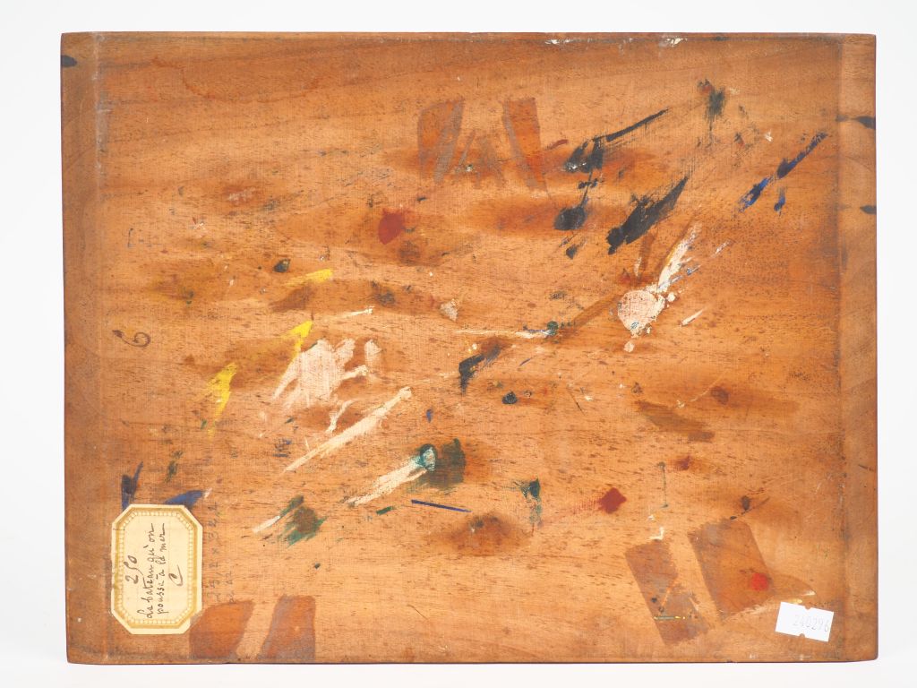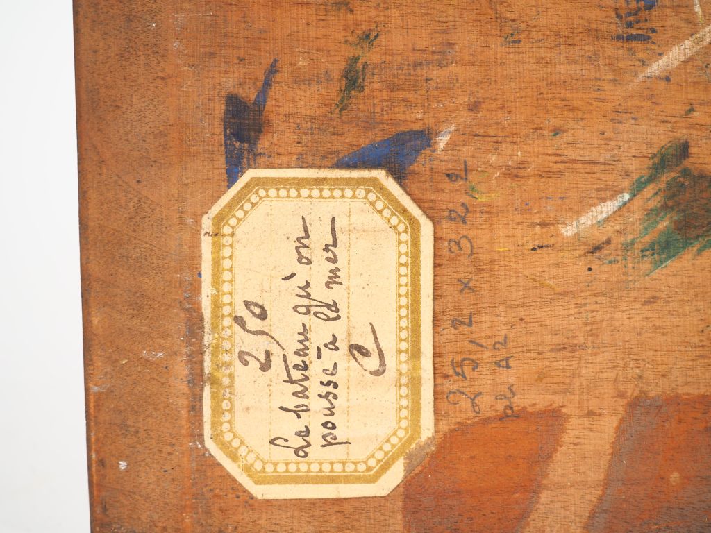 Virginie DEMONT-BRETON. "Le bateau qu'on pousse à la mer". Huile sur panneau, signée en bas à droite. Titrée au dos sur une étiquette n°250. Dim. 24,5 x 32 cm Experts : Frédérick Chanoit et Pauline Chanoit Tel: 01.47.70.22.33. Email: frederic.chanoit@orange.fr