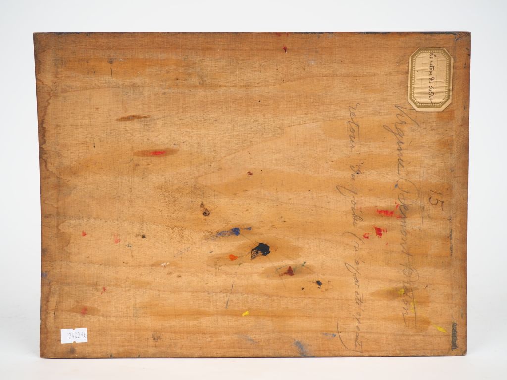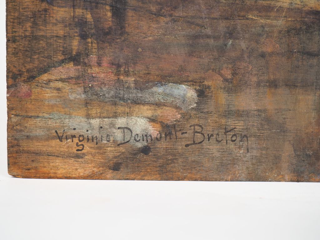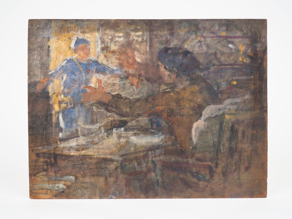 Virginie DEMONT-BRETON. "Retour du poilu". Esquisse à l’huile sur panneau, signée en bas à gauche. Dim. 26 x 35 cm Experts : Frédérick Chanoit et Pauline Chanoit Tel: 01.47.70.22.33. Email: frederic.chanoit@orange.fr