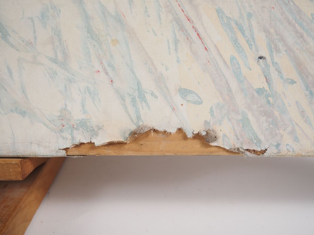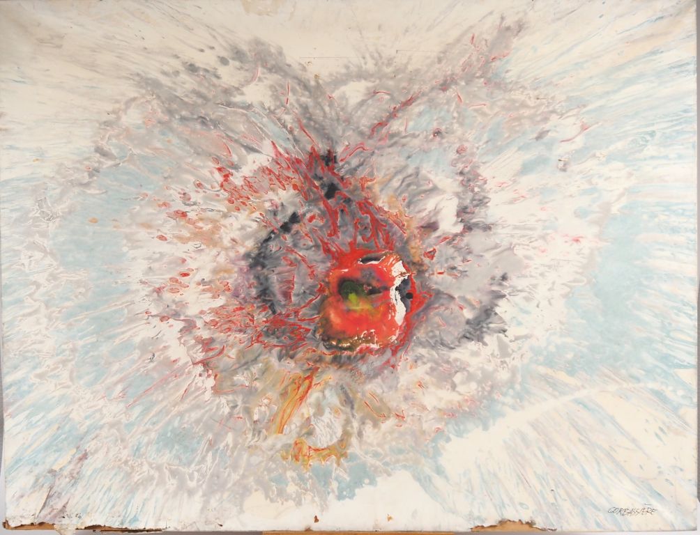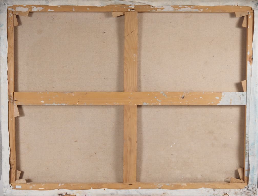 Yves CORBASSIERES. "Composition". Huile sur toile. Dim. 89 X 116 cm. (accidents sur les bords).
