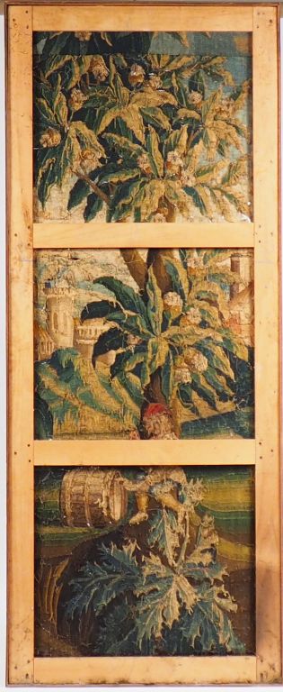 Lot de Fragment de tapisserie d'Aubusson XVIIème "Le buveur" 222 x 89,5 cm ( au prix de 400 à 600 € en vente aux enchères par l'hôtel des ventes Primardeco