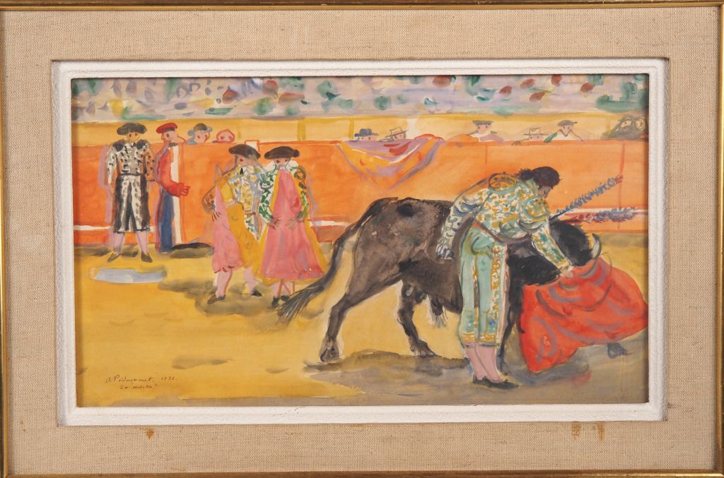 Lot de A. PEDOUSSAUT "La muleta" aquarelle signée en bas à gauche et datée 19 au prix de 30 à 50 € en vente aux enchères par l'hôtel des ventes Primardeco