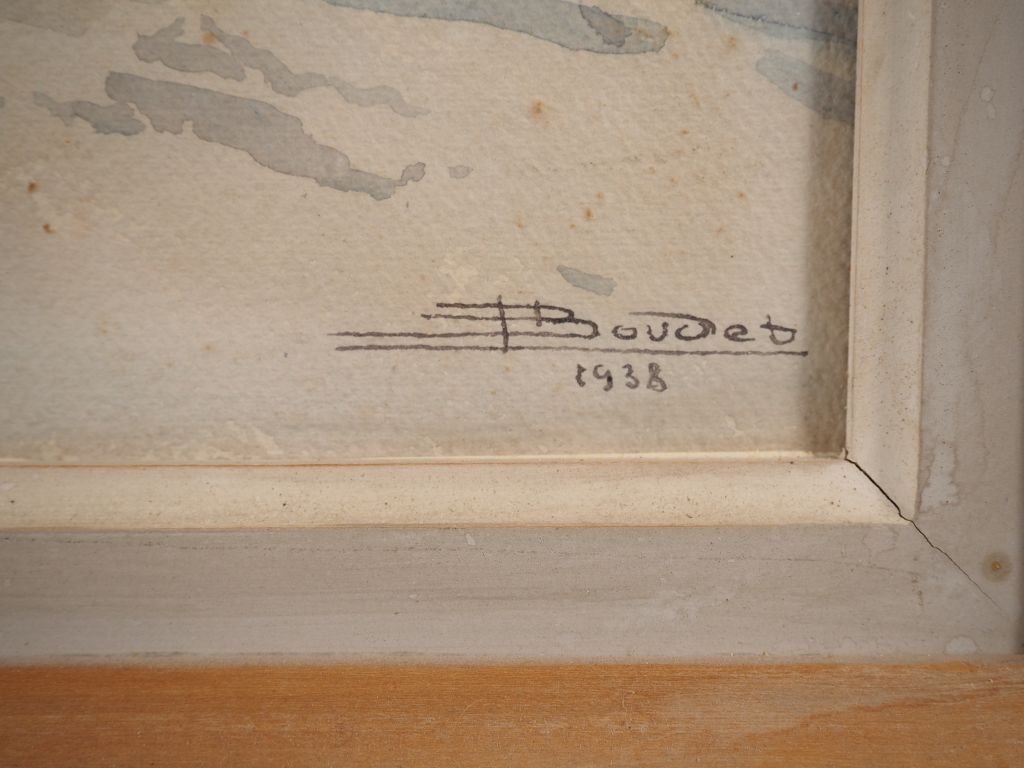 Aquarelle signée en bas à droite Boudet 'La place aux vieux chênes'