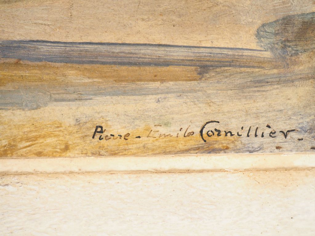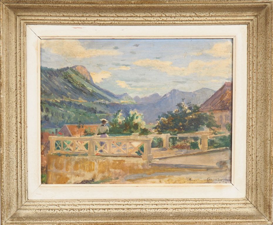 CORNILLIER. "Vue de la terrasse". Huile sur panneau signée en bas à droite. Dim. 27 x 35 cm.