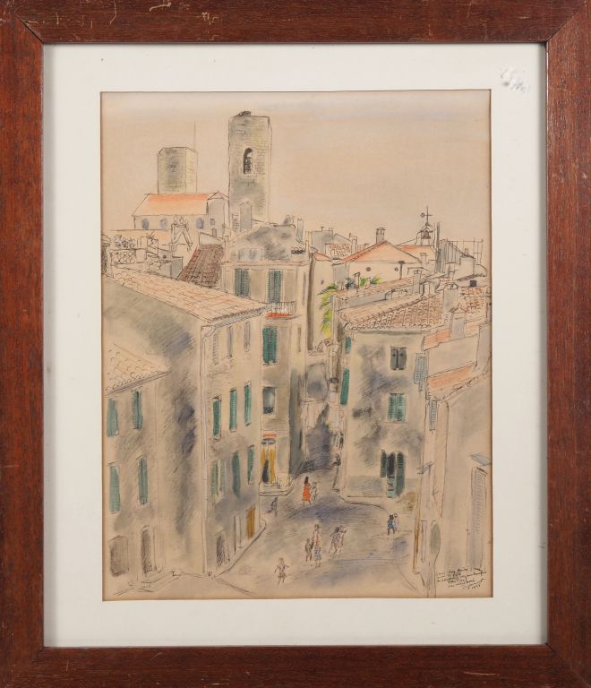 Lot de DIGNIMONT. "vue d'Antibes" dessin signé en bas à droite et daté 55. au prix de 20 à 40 € en vente aux enchères par l'hôtel des ventes Primardeco