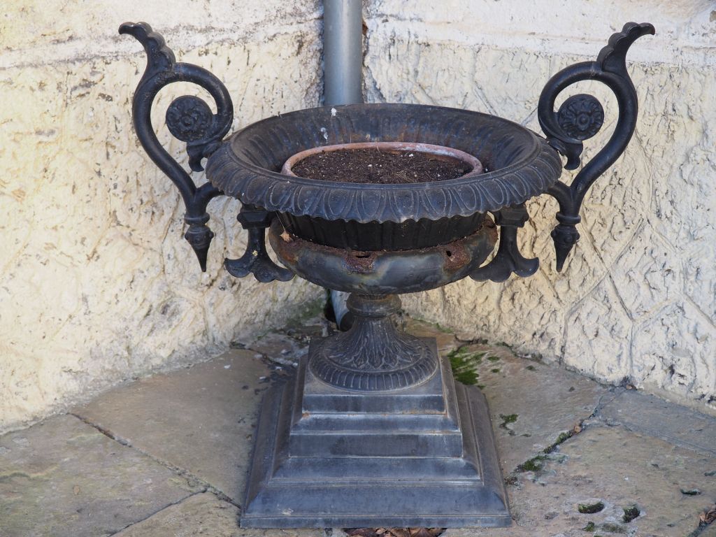 Grande jardinière en fonte. H. 92 cm. (accidents)