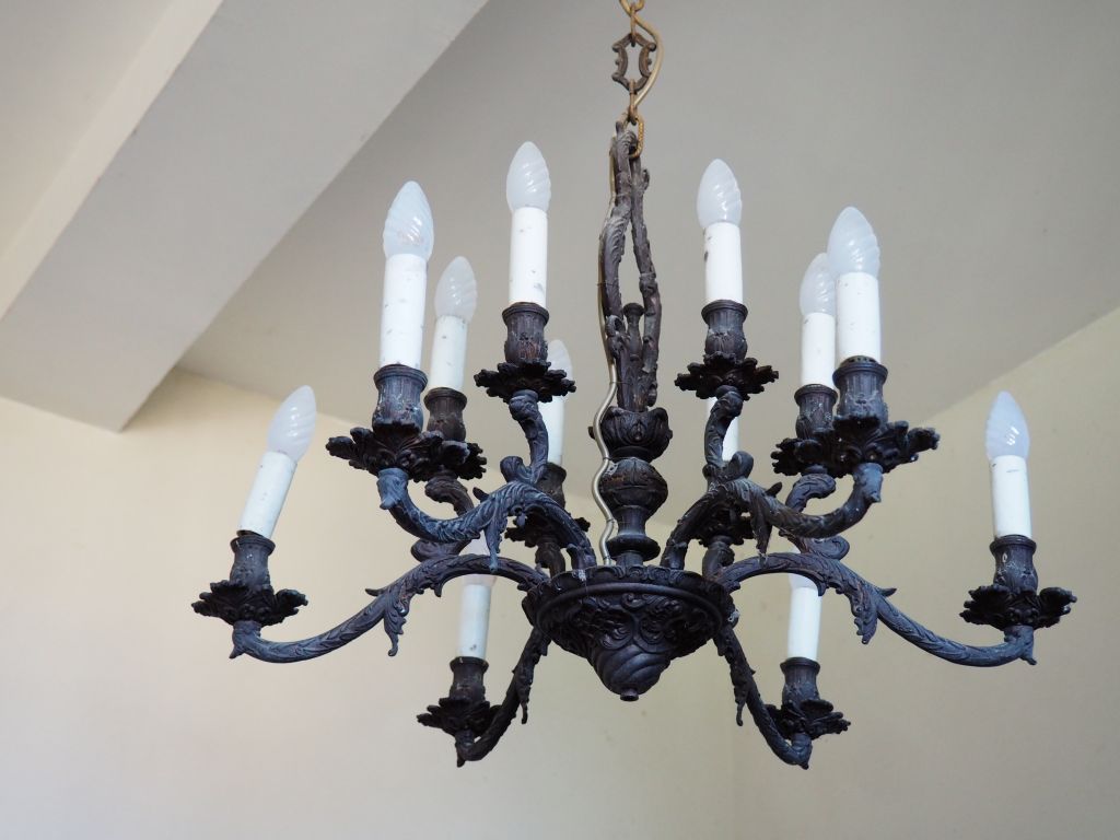 Lot de Lustre en métal à patine brune éclairant à 12 lumières. au prix de 50 à 80 € en vente aux enchères par l'hôtel des ventes Primardeco
