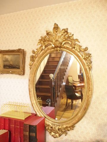 Lot de Miroir médaillon en bois et stuc doré au prix de 300 à 450 € en vente aux enchères par l'hôtel des ventes Primardeco