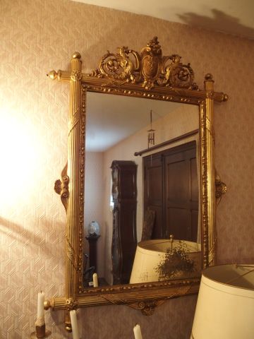 Lot de Miroir XIXeme en bois et stuc doré fronton à décor de chimères au prix de 300 à 400 € en vente aux enchères par l'hôtel des ventes Primardeco