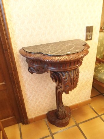 Lot de Paire de consoles de style Louis XV en noyer dessus marbre vert au prix de 400 à 600 € en vente aux enchères par l'hôtel des ventes Primardeco